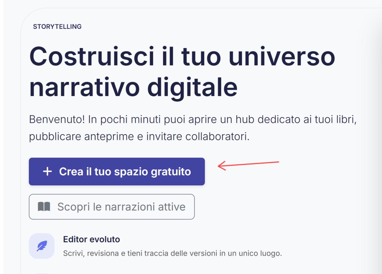 Lo spazio di lavoro è l’area personale in cui verranno salvati tutti i tuoi progetti di scrittura, le note e le impostazioni del tuo account.